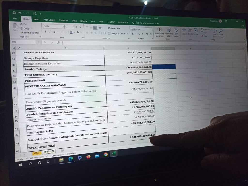 Menurut ketua Tim TAPD Kabupaten Tabalong Hj.Hamida Munawaroh menjelaskan, belanja APBD Induk Tahun 2023 sebesar 1.8 terliun lebih, namun setelah Perubahan menjadi 2. 646 terlliun atau Rp 2.646. 649. 489,464,000,