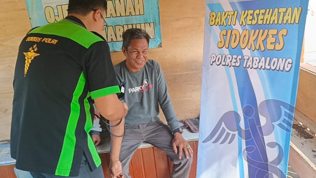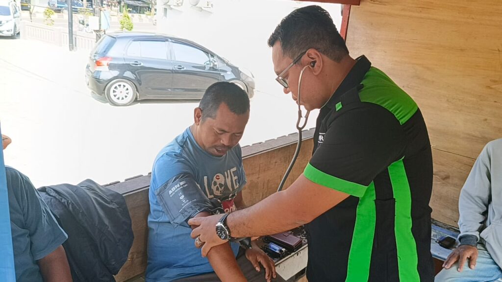 TANJUNG,TRIBUNEPLUSONLINE.COM Seksi Kedokteran dan Kesehatan (Sidokkes) Polres Tabalong di bawah Pimpinan Kasi Dokkes Polres Tabalong Aiptu Syarif Riswandi melaksanakan Bakti Kesehatan Bertempat di pangkalan ojek Kelurahan Mabuun pada Rabu (27/09/2023) pagi.
