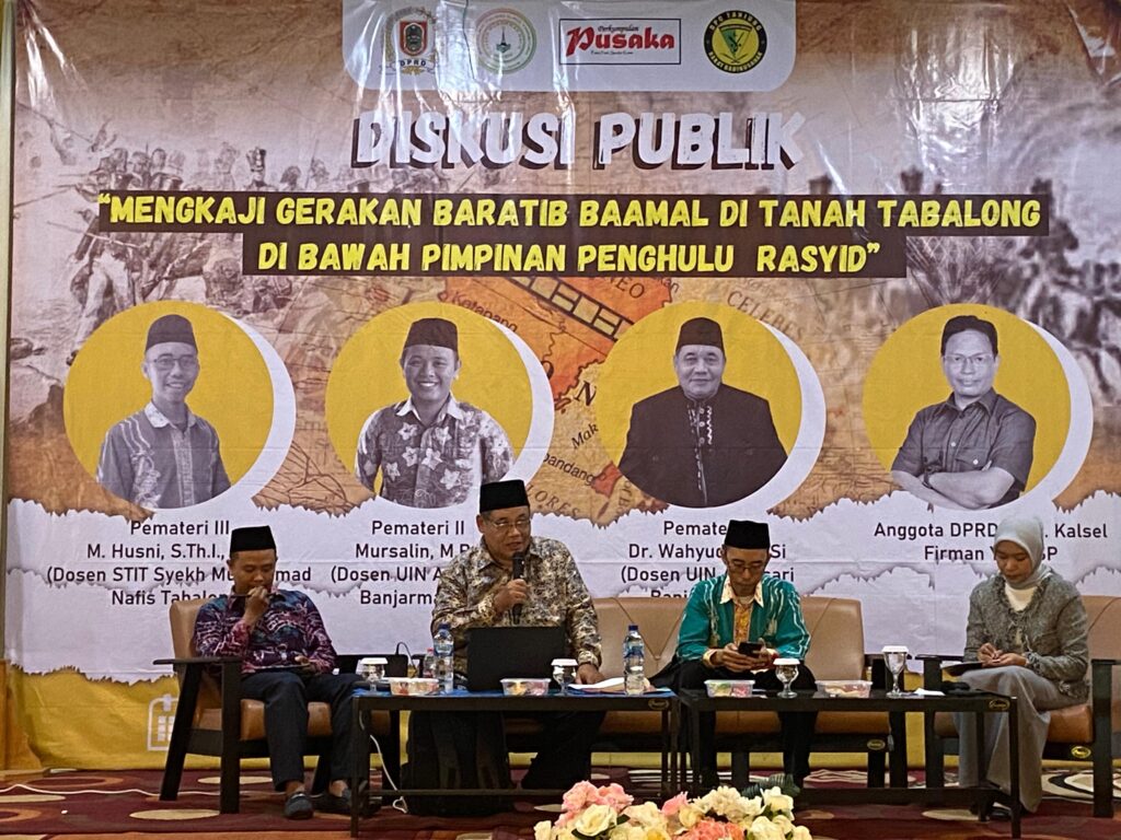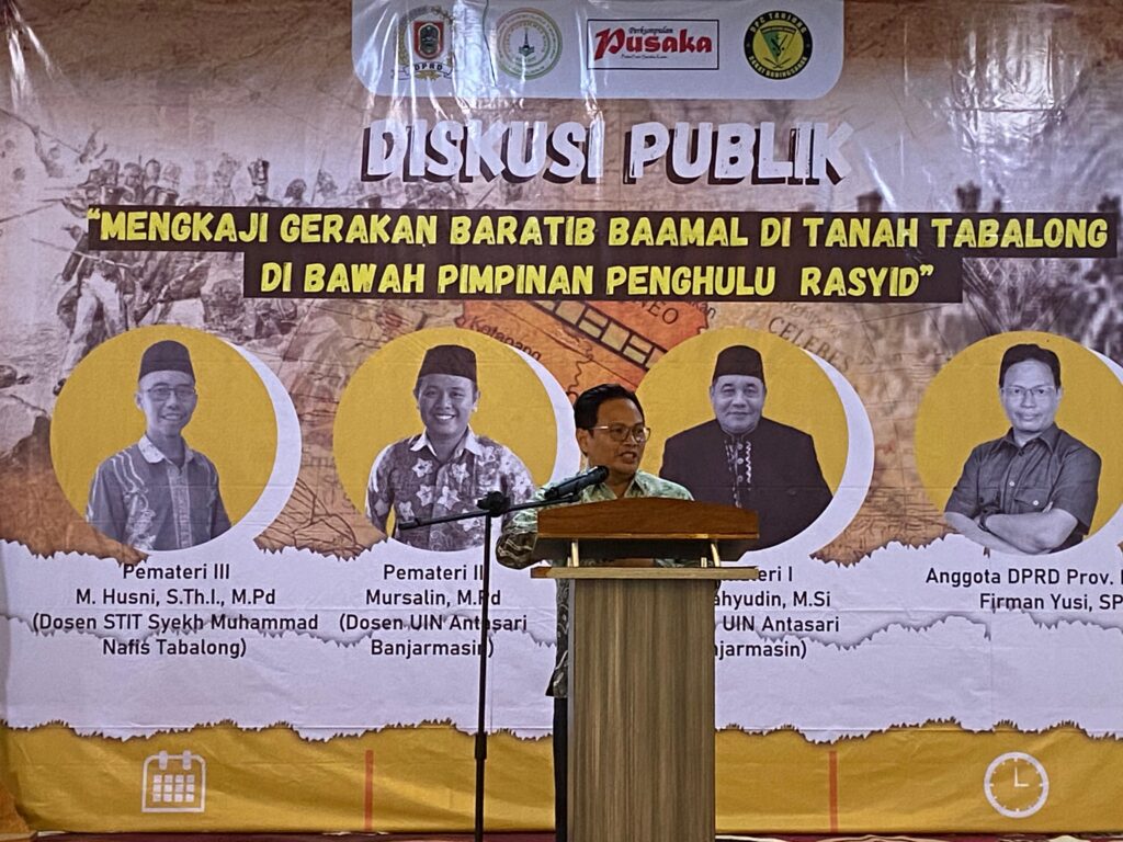 TANJUNG,TRIBUNEPLUSONLINE.COM Menggandeng Badan Eksekutif Mahasiswa (BEM) Sekolah Tinggi Ilmu Tarbiyah (STIT) Syech Muhammad Nafis Tabalong, anggota DPRD Provinsi Kalsel, Firman Yusi, membedah sejarah Gerakan Baratib Baamal di Tanah Tabalong di bawah Pimpinan Penghulu Rasyid, Senin (30/10/2023) lalu di Auditorium Islamic Center Tanjung.