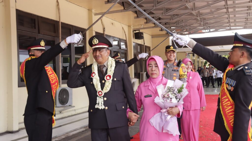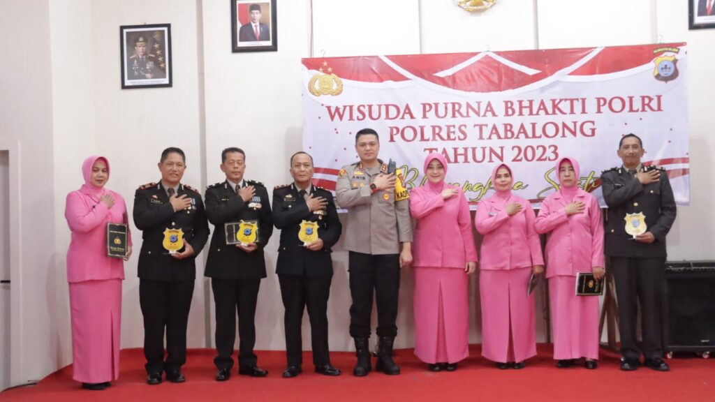 TANJUNG,TRIBUNEPLUSONLINE.COM Kapolres Tabalong AKBP Anib Bastian,S.I.K., M.H lepas 5 Purnawirawan Polri Polres Tabalong yang memasuki Purna Bhakti tahun 2023 di Halaman Mapolres Tabalong.