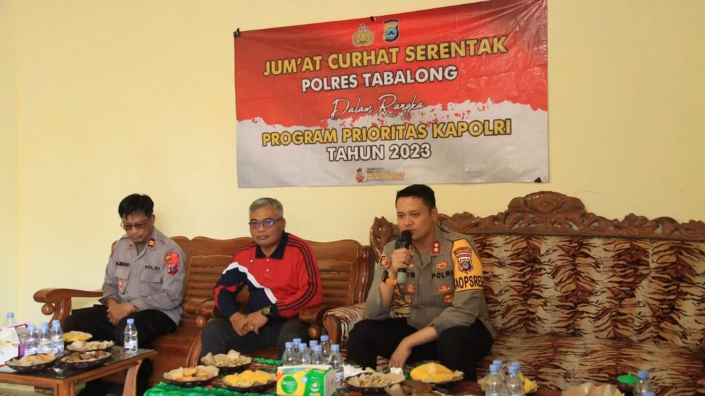 TANJUNG,TRIBUNEPLUSONLINE.COM Kapolres Tabalong AKBP Anib Bastian, S.I.K., M.H., menghadiri pelaksanaan Jumat Curhat bertempat Diteras Halaman Rumah Kepala Desa Uwie, Kecamatan Muara Uya, kabupaten Tabalong, Jumat (22/12/2023) pagi.