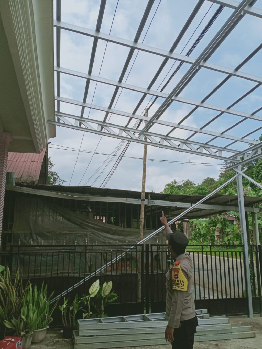 Korban MU yang pada pagi itu sedang melakukan pekerjaan atap baja ringan di untuk garasi milik MS didesa Solan Rt. 02 kecamatan Jaro, kabupaten Tabalong.