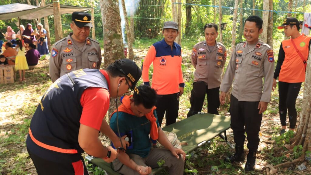Dalam kegiatan tersebut dilakukan pengecekan Kesehatan kepada Relawan dan Petugas Polri serta BPBD yang turut melakukan pencarian dengan maksud mendeteksi dini kesehatan fisik tim pencari agar kegiatan tersebut berjalan lancar.