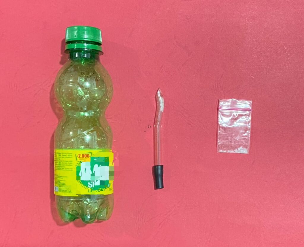 kedua pelaku saat ini sudah diamankan di Polres Tabalong untuk menjalani proses hukum dan turut disita barang bukti berupa 1 bungkus plastik klip berisi serbuk bening diduga Narkotika golongan I bukan tanaman jenis sabu-sabu dengan berat bersih 0,02 gram, 1 buah pipet kaca yang berisi gumpalan diduga narkotika golongan I jenis sabu-sabu, 1 buah bong yang terbuat dari botol plastik warna hijau, dan 2 buah gawai warna hitam dan biru ( relpolrestab)