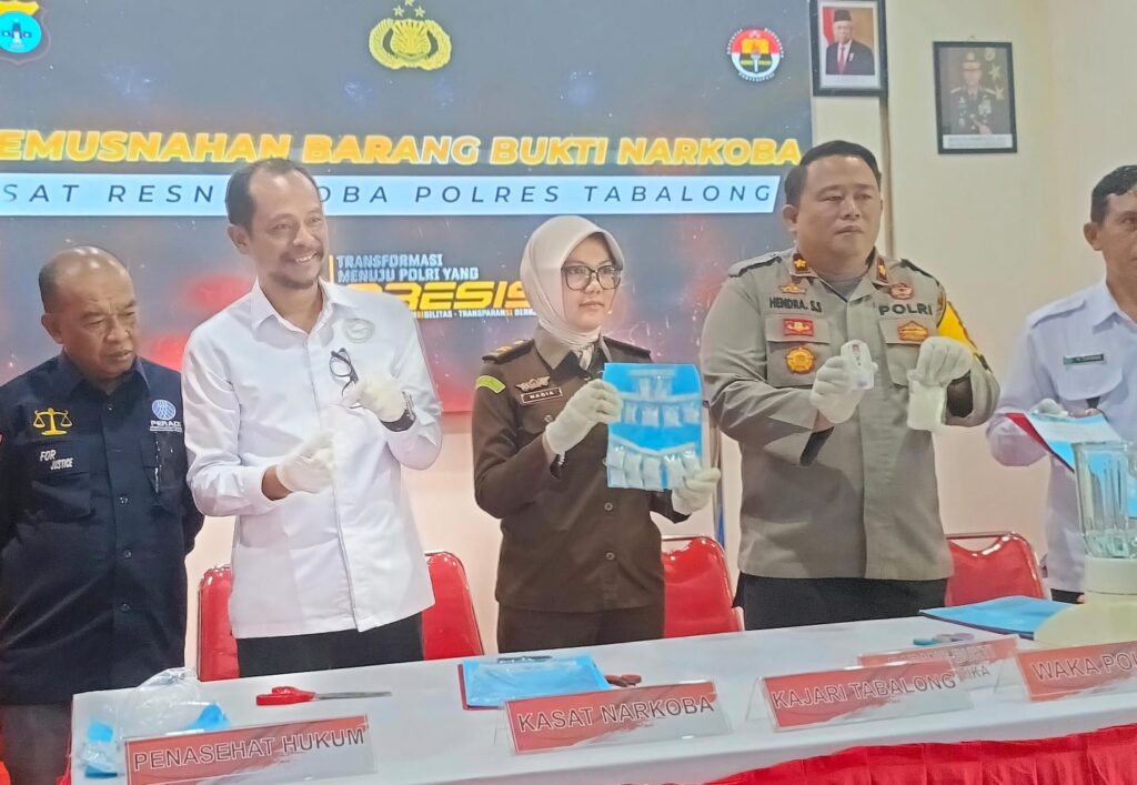 TANJUNG,TRIBUNEPLUSONLINE.COM Polres Tabalong menggelar pemusnahan barang bukti ratusan gram sabu milik dua tersangka SR warga desa Sungai Anyar, kecamatan Banua Lawas dan AR Warga kelurahan Pulau, Kecamatan Kelua kabupaten Tabalong.