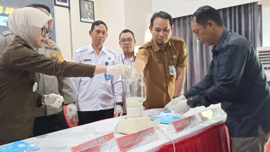 Badan Narkotika Nasional Kabupaten (BNNK) Tabalong, Kejaksaan Negeri, Dinas Kesehatan dan kuasa hukum kedua tersangka ikut memusnahkan dengan cara di blender mencampur sabu dengan sabun, lalu dibuang ke septic tank.