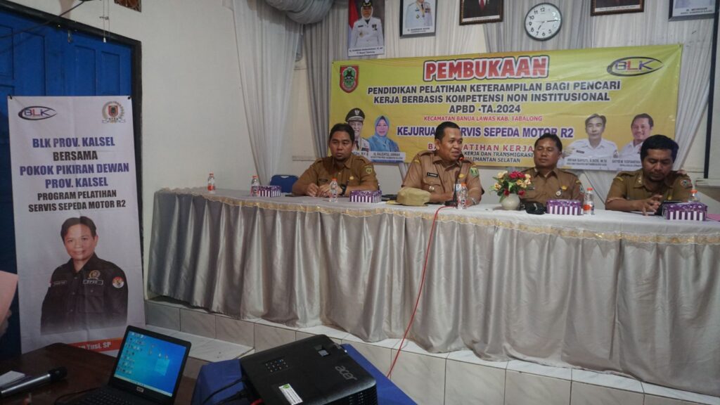 TANJUNG, TRIBUNEPLUSONLINE.COM Untuk menjawab tantangan zaman sekaligus mempersiapkan sebagai daerah penyangga Ibu Kota Nusantara ( IKN ) masyarakat Kecamatan Banua Lawas mengikuti pelatihan yang diselenggarakan oleh BLK Dinas Tenaga Kerja Provinsi Kalsel menggandeng Anggota DPRD Provinsi Firman Yusi dari Partai PKS dan Suwandi Camat Banua Lawas, Kecamatan Banua Lawas Kabupaten Tabalong melaksanakan pelatihan mekanik sepeda motor. Yang bertujuan untuk mencetak calon mekanik wirausaha baru di bidang otomotif yang handal dan profesional, hal tersebut di katakan oleh Camat Banua lawas Suwandi saat ditemui di lokasi ( Senin 15/7/ 24 )
