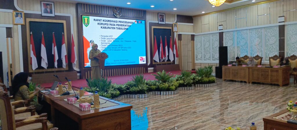 TANJUNG,TRIBUNEPLUSONLINE.COM Penjabat (Pj) Bupati Tabalong,Hj Hamida Munawarah membuka Rapat Koordinasi (Rakor) pencegahan korupsi pada pemerintah Kabupaten Tabalong, Selasa (30/07/2024).