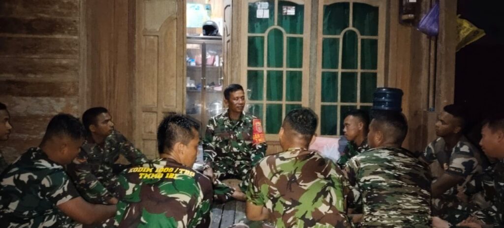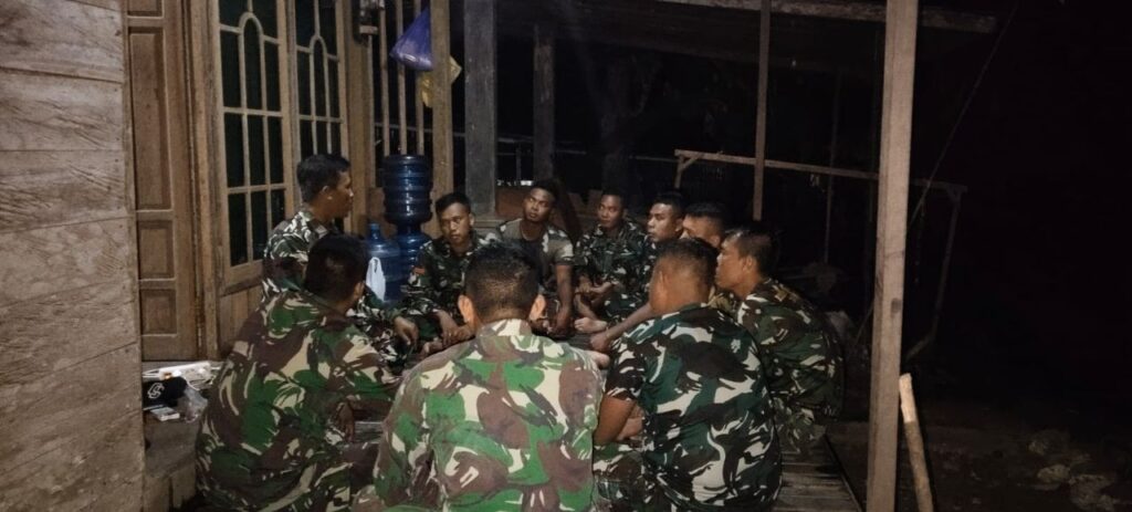 Bertempat di rumah warga yang menjadi tempat tinggal personel satgas selama TMMD berlangsung, Kapten Inf Dwi Prayitno mengumpulkan personel.