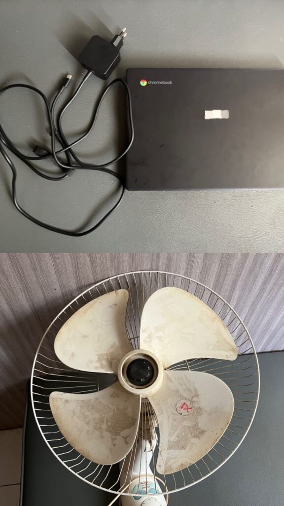 Dari kejadian tersebut petugas berhasil menyita barang bukti berupa 1 buah laptop warna hitam dan 1 buah kipas angin warna biru. (rellpolrestab)