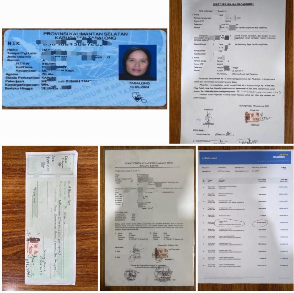 Menurut keterangan korban MRZ (35) warga kelurahan Pembataan Kecamatan Murung Pudak kabupaten Tabalong, pada Minggu (17/09/2023) siang, istri korban melihat sebuah unggahan di media sosial perihal gadai sebidang tanah senilai 35 juta Rupiah.