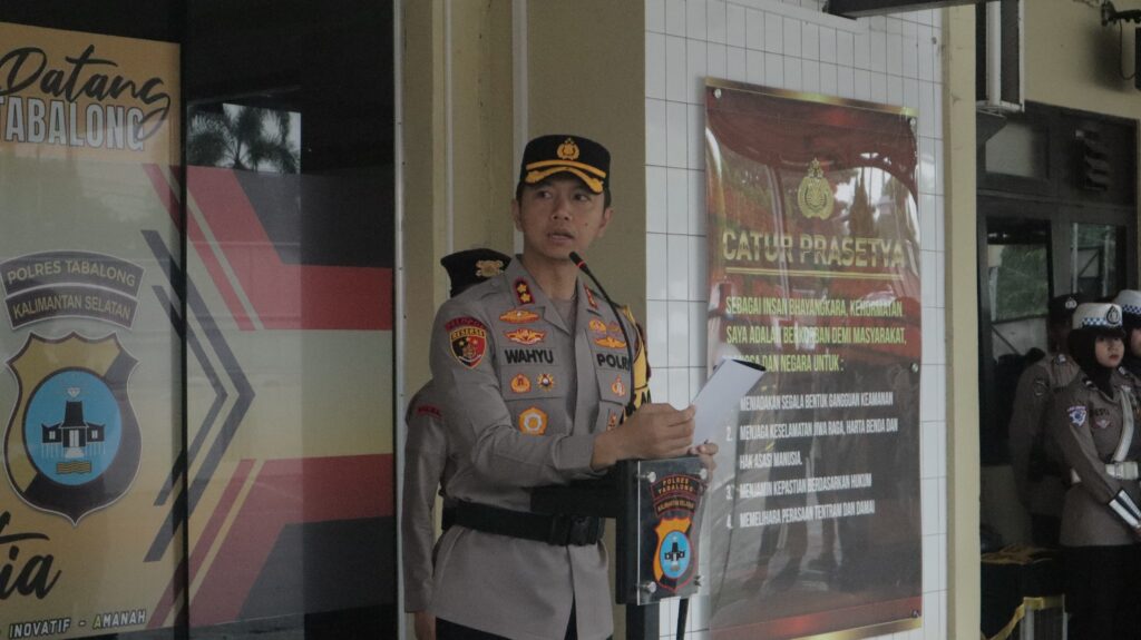 Bertindak selaku pimpinan apel Kapolres Tabalong, AKBP Wahyu Ismoyo J., S.I.K., M.H., M.Tr.Opsla di dampingi para pejabat utama dan Kapolsek jajaran Polres Tabalong.