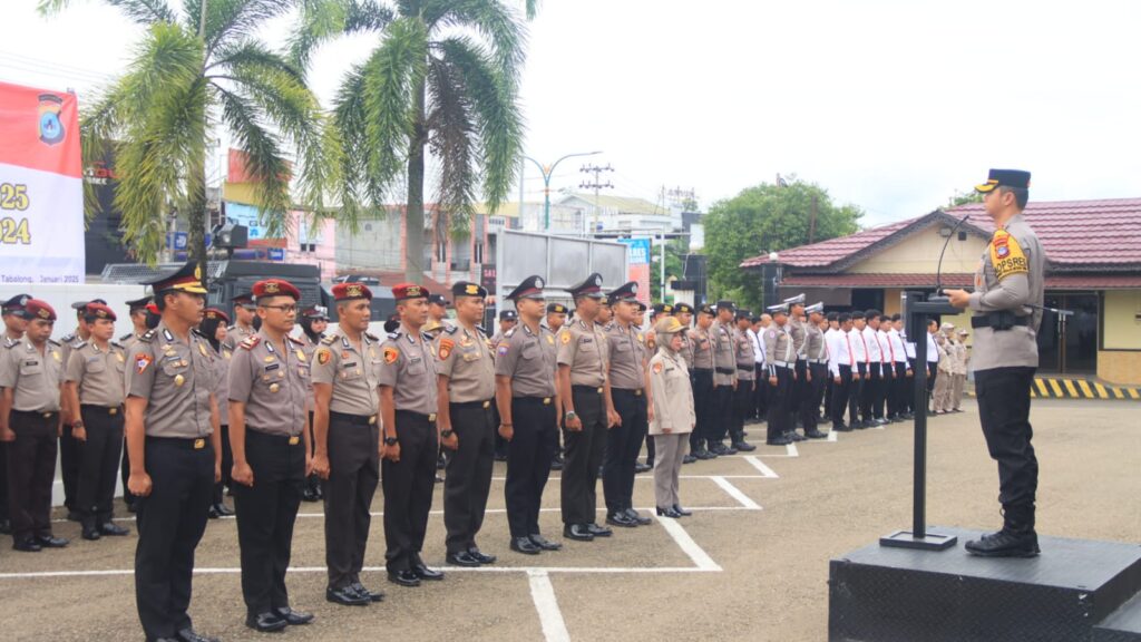 TANJUNG,TRIBUNEPLUSONLINE.COM Kapolres Tabalong AKBP Wahyu Ismoyo J., S.I.K., M.H., M.Tr.Opsla., memimpin upacara kenaikan pangkat bagi personel nya, periode 1 Oktober 2024 sampai dengan 1 Januari 2025, Kamis (02/01/2024) di Halaman Mapolres Tabalong.
