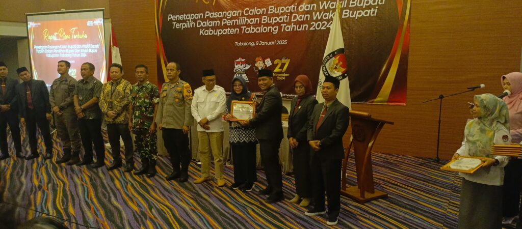 Rapat Pleno yang digelar oleh Komisi Pemilihan Umum (KPU) Tabalong tersebut, menetapkan pasangan calon Bupati dan Wakil Bupati Tabalong terpilih yakni pasangan nomor urut 3, H Muhammad Noor Rifani dan Habib Muhammad Taufani Alkaf.