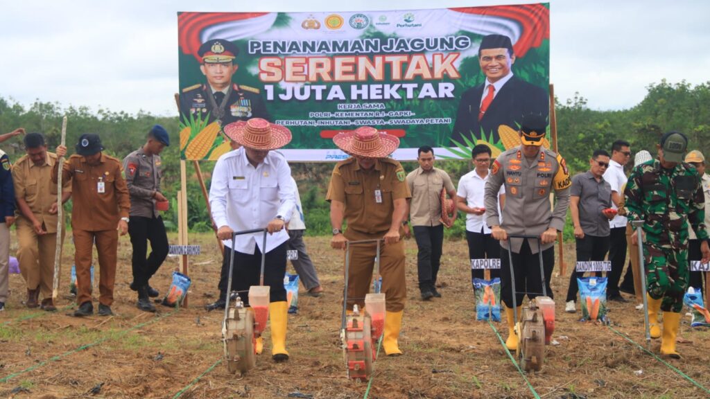 Kegiatan Penanaman Jagung ini merupakan bagian dari program nasional yang dilaksanakan secara serentak seluas 1 juta hektar, merupakan kerja sama antara Polri, Kementerian Pertanian, GAPKI, sektor kehutanan, pihak swasta, dan kelompok tani untuk mendukung target swasembada pangan tahun 2025.