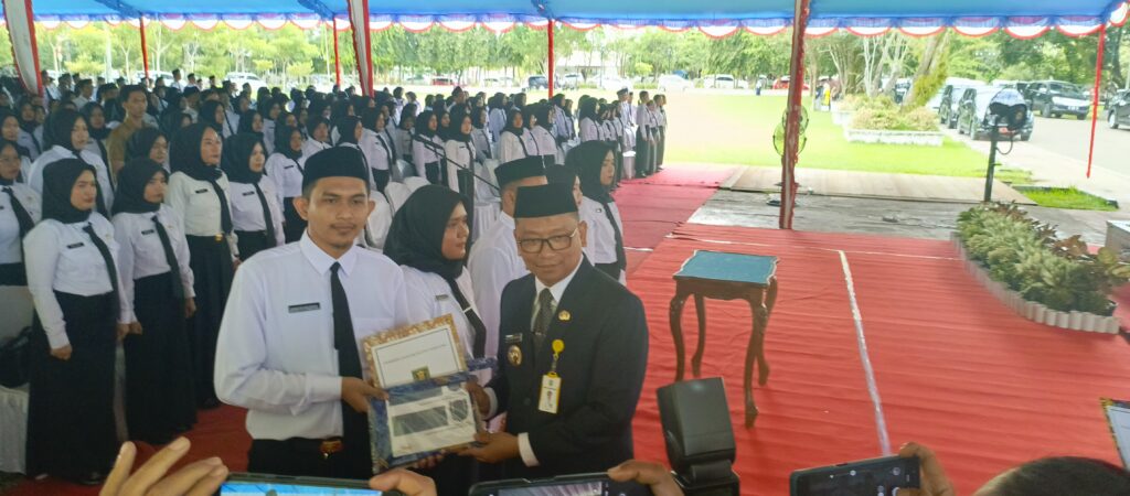 TANJUNG,TRIBUNEPLUSONLINE.COM Sebanyak 88 Pegawai Negara Sipil (PNS) dan 703 Pegawai Pemerintah dengan Perjanjian Kerja (PPPK) secara resmi dilantik, Senin (14/04/2025) di Halaman Pendopo bersinar.
