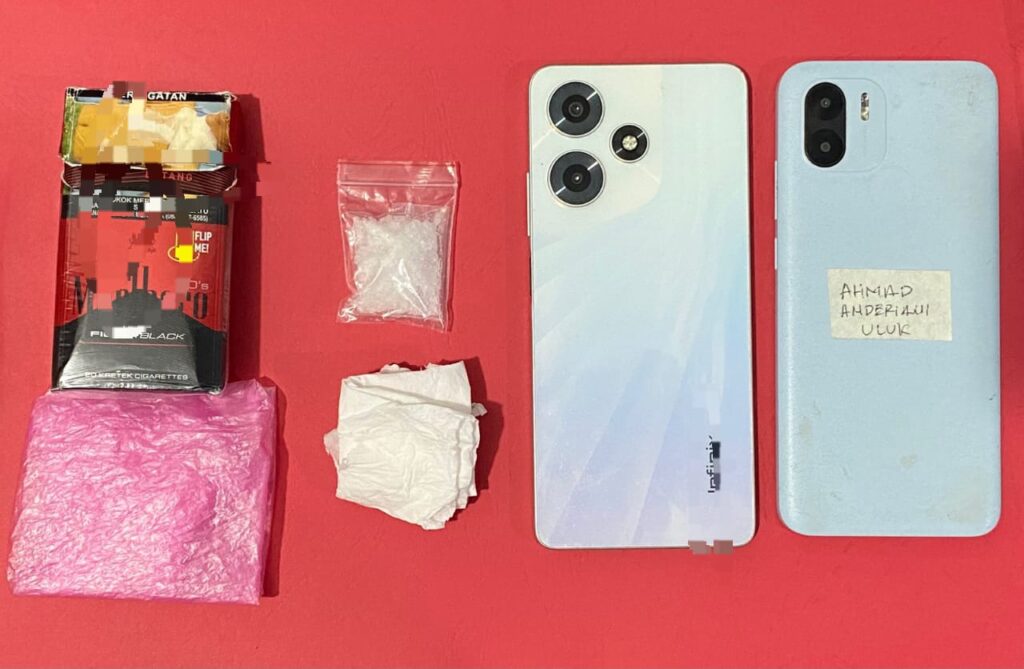 Kedua pelaku kemudian diamankan di Polres Tabalong untuk menjalani proses hukum dan turut disita barang bukti berupa 1 bungkus plastik klip yang berisi serbuk kristal warna bening diduga Narkotika Golongan I jenis sabu-sabu dengan berat bersih 5,23 gram, 1 lembar tisu.,1 bungkus plastik warna merah muda, 1 buah kotak rokok warna merah hitam, 2 buah gawai berwarna biru muda dan 1 buah skuter metik warna putih.(rel )