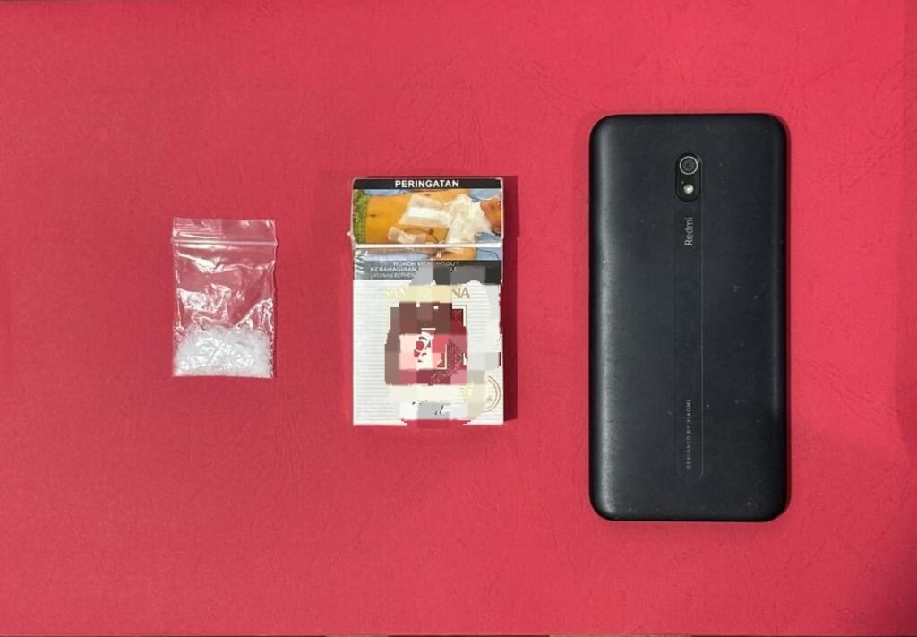 1 bungkus plastik klip yang berisi serbuk kristal warna bening diduga Narkotika Golongan I jenis sabu-sabu dengan berat bersih 1,29 gram, 1 buah kotak rokok warna putih, 1 buah gawai warna hitam dan 1 buah skuter metik warna hitam disita sebagai barang bukti.(rel )