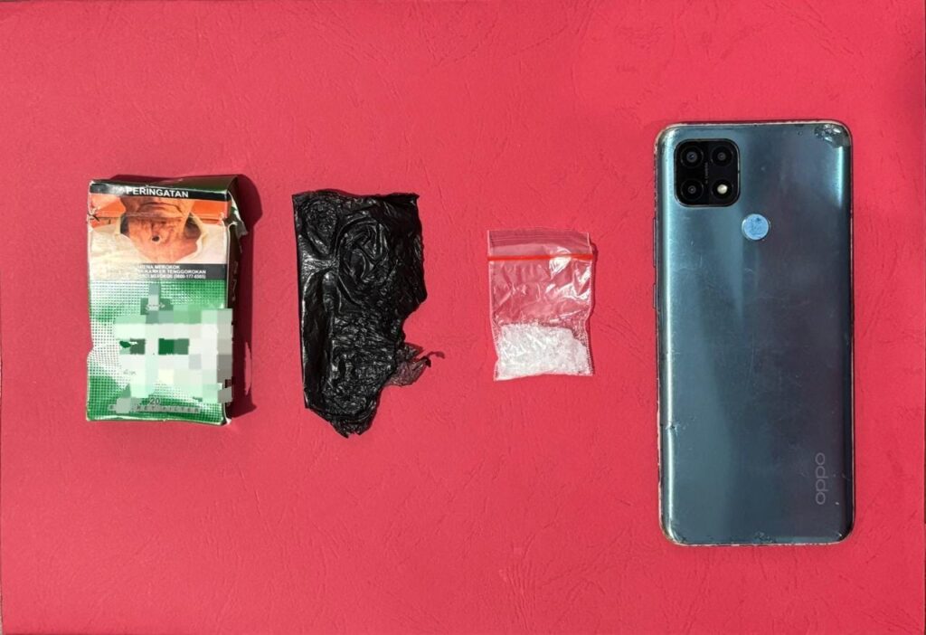 Polisi kemudian mengamankan HV dan melakukan pemeriksaan badan, ditemukan 1 bungkus bekas kotak rokok yang didalamnya terdapat bungkusan plastik klip yang berisi serbuk bening diduga narkotika jenis sabu-sabu.