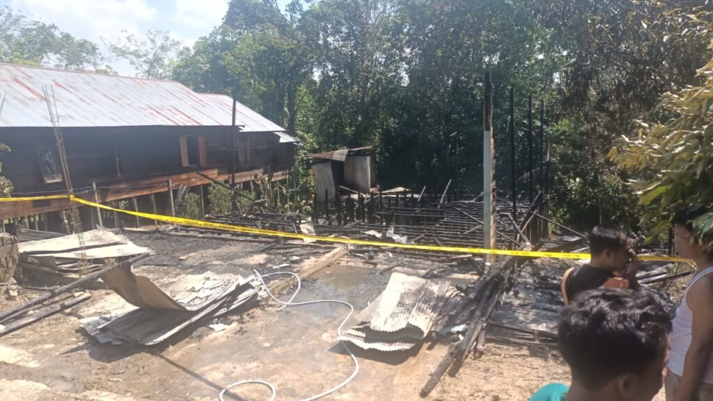 TANJUJG, TRIBUNEPLUSONLINE.COM Polres Tabalong – Polsek Bintang Ara yang dipimpin oleh Kapolsek IPDA Hartanto melakukan pengamanan tempat kejadian perkara kebakaran yang terjadi didesa Usih RT.3 kecamatan Bintang Ara pada Senin (28/7/2025) siang
