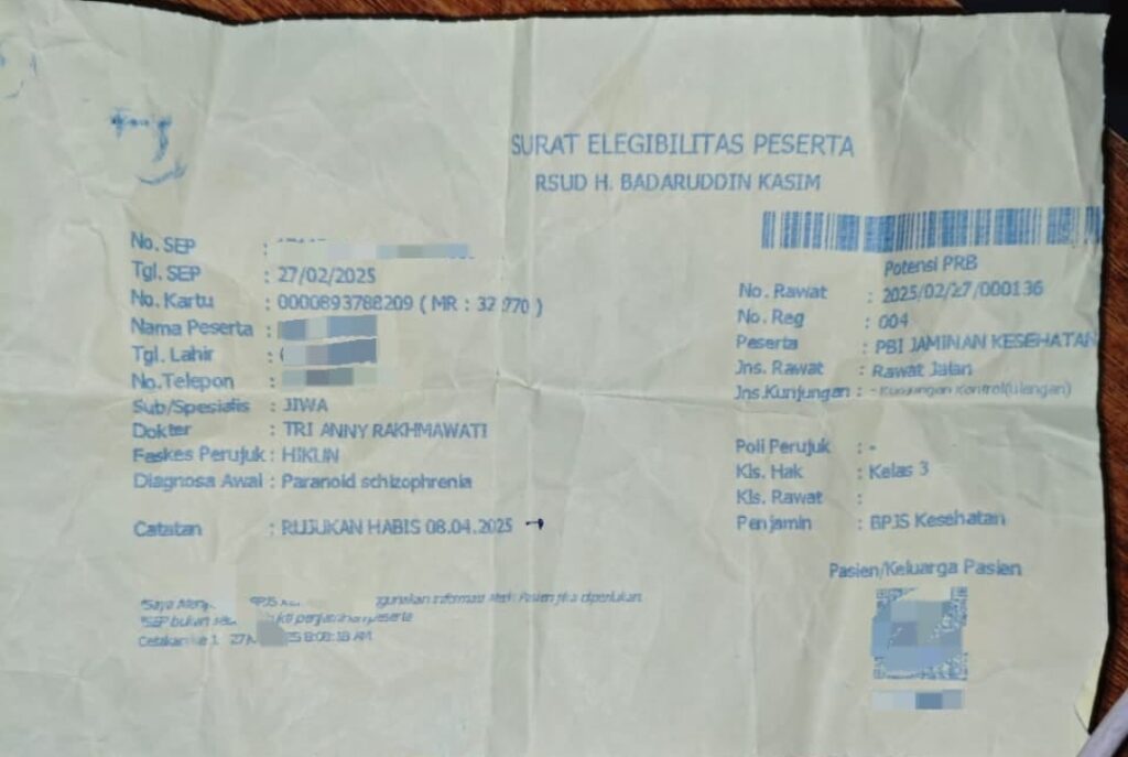 Dalam koordinasi tersebut, pihak keluarga menyampaikan bahwa MR sedang dalam proses pengobatan kejiwaan yang dibuktikan dengan surat Elegibilitas yang dikeluarkan oleh dokter spesialis jiwa.