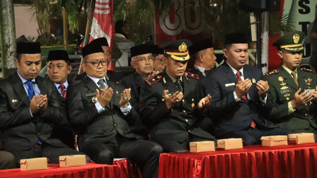 TANJUNG, TRIBUNEPLUSONLINE.COM Ruas jalan seputaran pendopo bersinar Kecamatan Murung Pudak Kabupaten Tabalong, nampak di penuhi oleh Masyarakat yang ingin menyaksikan secara langsung pawai Obor, merupakan rangkaian pelaksanaan Upacara Taptu dalam rangka peringatan HUT ke-80 Kemerdekaan RI yang digelar Pemkab Tabalong, Sabtu (16/8/2025) malam.