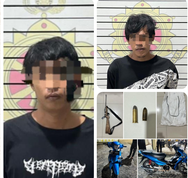 Kedua pelaku kemudian diamankan di Polres Tabalong untuk menjalani proses hukum dan 1 pucuk senjata api laras panjang, 2 butir peluru tajam organik kaliber 3,8 mm dan kaliber 5,7 mm, 1 buah karung warna Putih beserta Karet Warna Hitam dan 1 buah sepeda motor warna biru diamankan sebagai barang bukti.(relpolrestab )