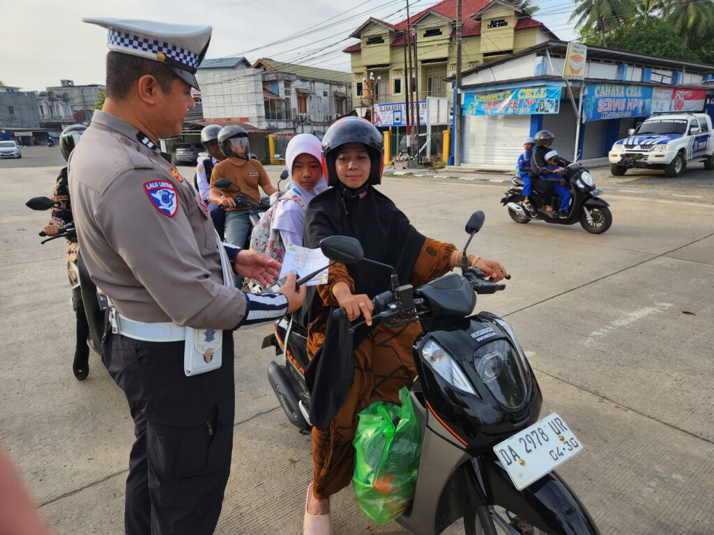 Dalam kegiatan tersebut, personel Unit Kamsel Satlantas Polres Tabalong memberikan imbauan langsung kepada para pengendara, baik pengguna kendaraan roda dua maupun roda empat. Imbauan yang disampaikan meliputi pentingnya penggunaan helm berstandar SNI, larangan menggunakan ponsel saat berkendara, tidak melawan arus, serta kewajiban membawa dan melengkapi dokumen kendaraan seperti SIM dan STNK.