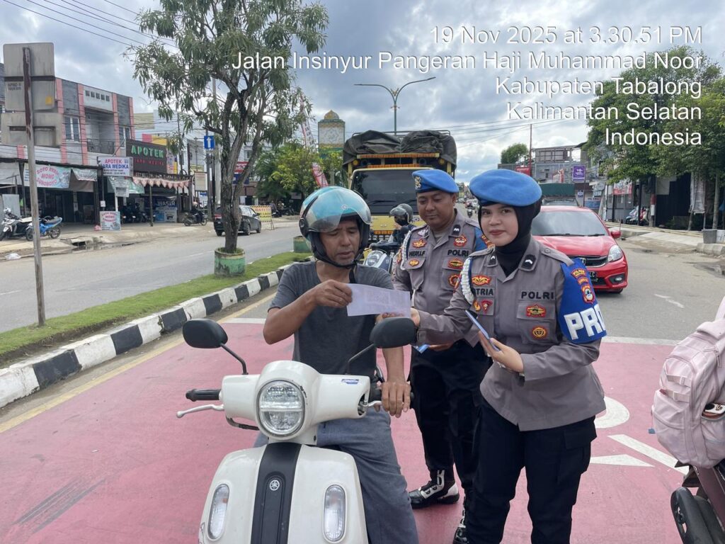 TANJUNG, Polres Tabalong . melalui Seksi Profesi dan Pengamanan (Si Propam) Polres Tabalong melaksanakan kegiatan pembagian brosur berisi informasi Pengaduan Cepat Propam Polri kepada para pengguna jalan raya. Kegiatan ini dipimpin langsung oleh Kasi Propam Polres Tabalong, IPTU Abdul Gani, S.E., bersama personel Si Propam, pada Rabu (19/11/25) Sore.