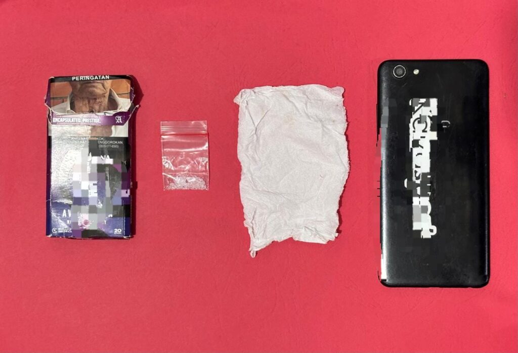 Petugas sempat melihat pelaku menjatuhkan suatu benda dan setelah diperiksa ternyata adalah sebungkus kotak rokok yang berisi 1 bungkus plastik klip serbuk kristal warna bening yang diduga narkotika golongan I jenis sabu – sabu bukan tanaman, setelah ditanyakan pelaku mengakui mendapatkan barang tersebut dari seseorang berinisial MFI.