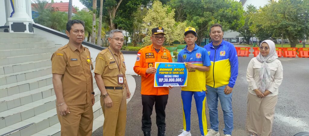Selain para atlet, pelatih yang cabang olahraga nya meraih prestasi juga mendapatkan bonus yang diserahkan langsung oleh Bupati Tabalong H Muhammad Noor Rifani, Selasa (30/12/2025).