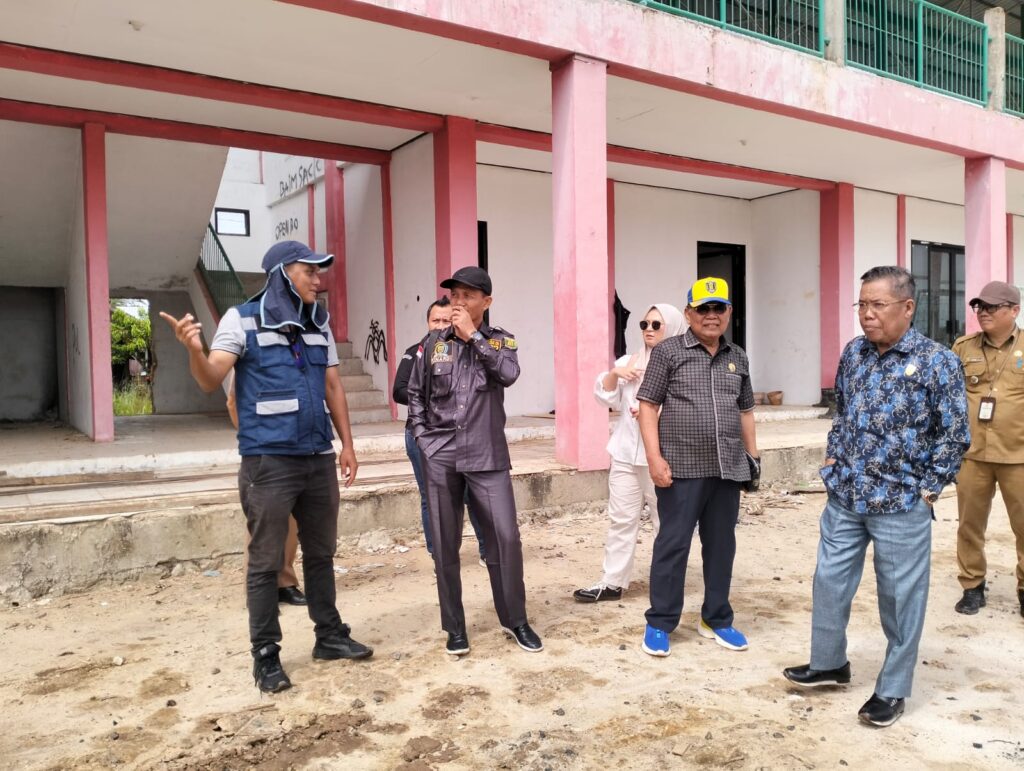 Rombongan Komisi III DPRD berjalan menyusuri area proyek, mencatat satu per satu detail yang dinilai tidak selaras dengan nilai kontrak dan waktu pengerjaan yang berakhir pada 30 Desember 2025