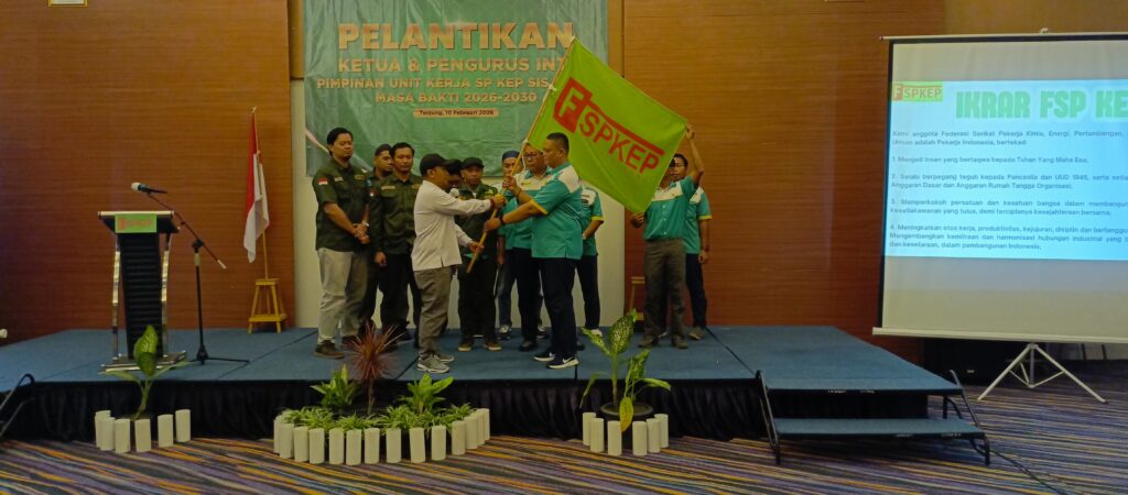 TANJUNG, TRIBUNEPLUSONLINE.COM DPC Federasi Serikat Pekerja Kimia, Energi, dan Pertambangan (FSP KEP) Tabalong menggelar pelantikan Ketua dan Pengurus Inti Pimpinan Unit Kerja (PUK) SP KEP SIS ADMO.