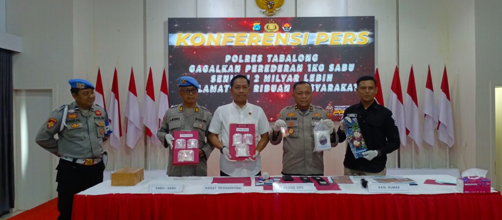 TANJUNG, TRIBUNEPLUSONLINE.COM Polres Tabalong menggelar konferensi pers terkait penggagalan peredaran 1 Kilogram lebih narkotika, Rabu (25/2/2026).