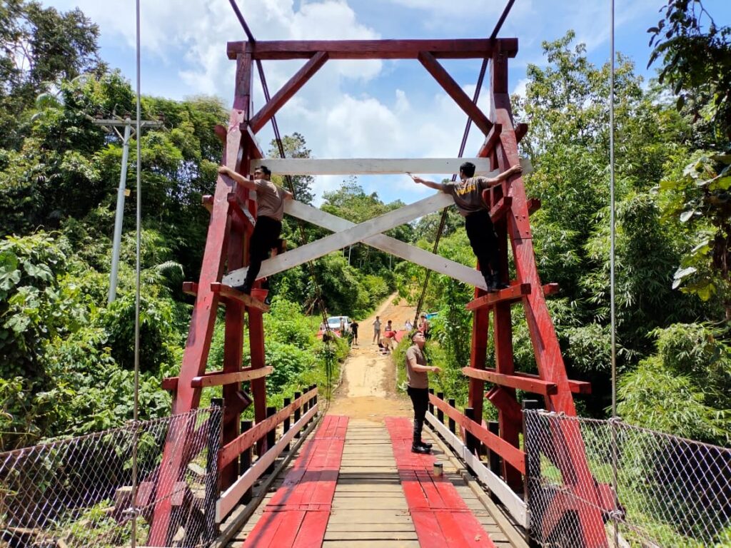 Tahapan akhir berupa pengecatan jembatan dilaksanakan pada Rabu (1/4/2026), dipimpin Kabag Log Polres Tabalong AKP Lamris Manurung, S.H., didampingi Kapolsek Bintang Ara Iptu Hartanto serta Danton Brimob Batalyon C Tanjung Ipda Mahmudah.