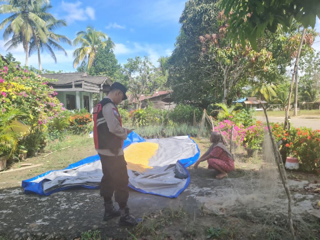 Kapolsek Muara Uya bersama personel juga memberikan arahan kepada kelompok tani agar terus melakukan penjemuran hingga kadar air mencapai standar ideal, yakni sekitar 14%, sehingga kualitas jagung tetap terjaga saat proses distribusi.