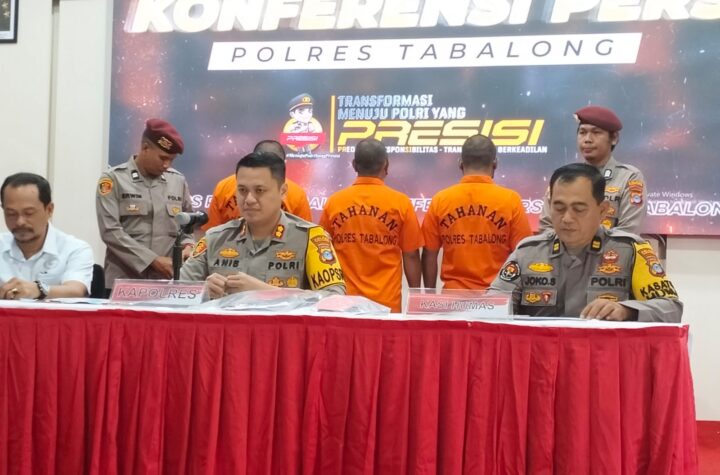 TANJUNG,TRIBUNEPLUSONLINE.COM Kapolres Tabalong AKBP Anib Bastian, S.I.K., M.H mempimpin pelaksanaan konferensi pers kasus peredaran gelap Narkotika jenis sabu-sabu oleh 3...