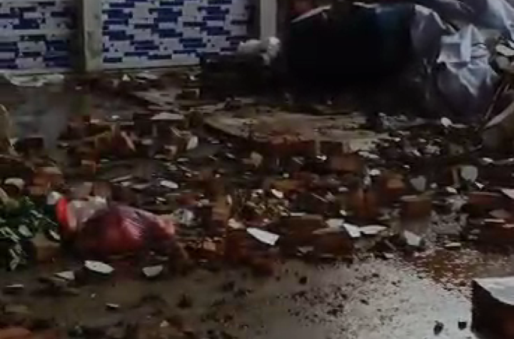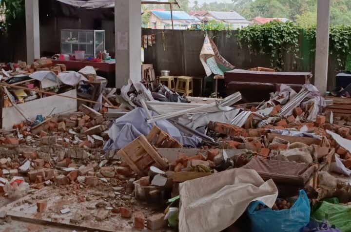TANJUNG, TRIBUNEPLUSONLINE.COM , Dinding Layar Bangunan Pasar Rakyat di Kecamatan Tanjung Kabupaten Tabalong ( pasar Tanjung ) Ambruk di terjang...