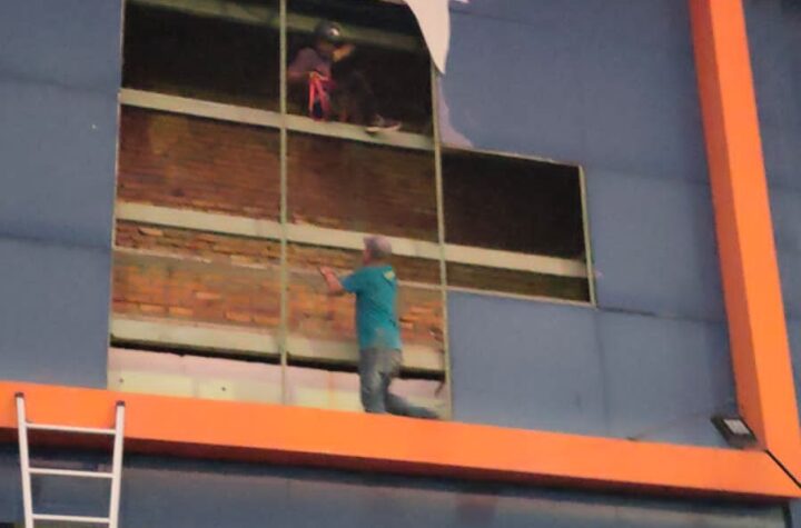 TANJUNG-TRIBUNEPLUSONLINE.COM Federasi Panjat Tebing Indonesia Kabupaten Tabalong lakukan pembersihan dinding ACP menjuntai membahayakan pengunjung, Rabu (1/11/23) di halaman Stadion Pembataan....