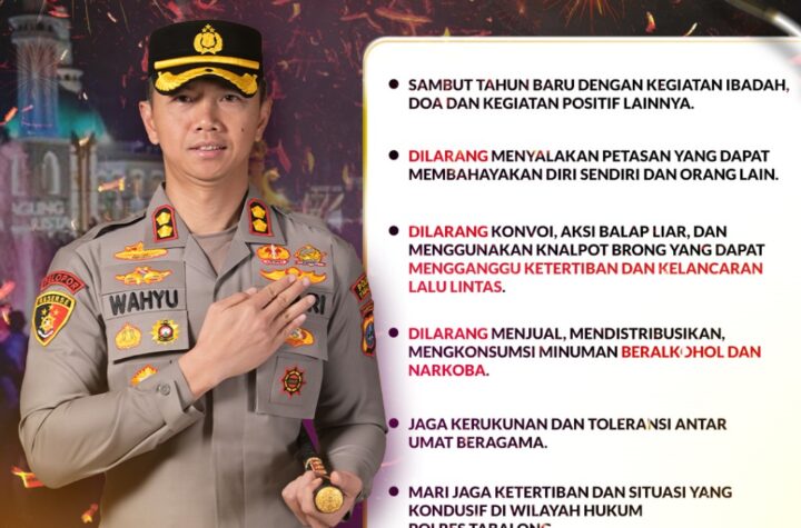 TANJUNG,TRIBUNEPLUSONLINE.COM Menjelang malam pergantian tahun, Kapolres Tabalong, AKBP Wahyu Ismoyo J., S.I.K., M.H., M.Tr.Opsla, mengimbau masyarakat di wilayah hukum Polres...